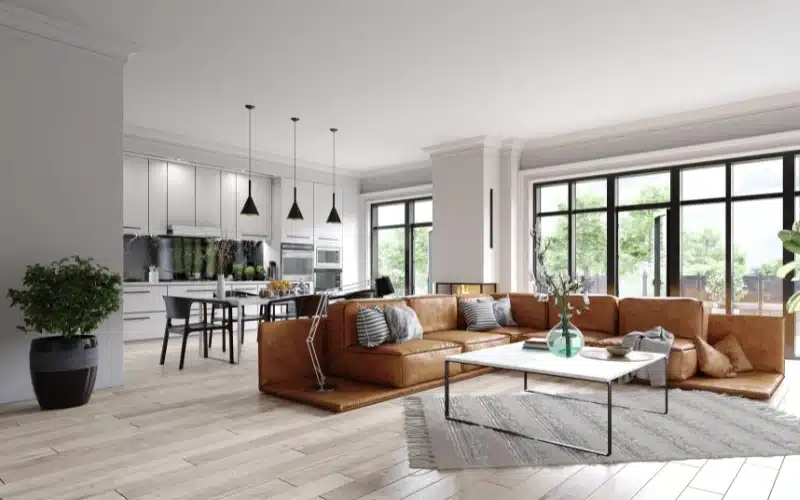 A large rug should be used to ground the living room seating arrangement, while a pendant light or chandelier can help define the dining space. This open flow is perfect for entertaining and keeps your home feeling airy and spacious.